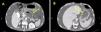 Tomografía espiral multicorte de abdomen con contraste. A: Colección pancreática de menor volumen en relación a imágenes previas. B: Cámara gástrica con adecuada distensión.