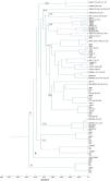 RAPD-PCR (Randomly Amplified Polymorphic DNA-PCR) fingerprinting profiles. RAPD-PCR was performed to evaluate the genetic variability among the strains. The reaction was carried out in 25μL containing: 65 ng of H. pylori DNA, 0.8μM of the primers 1254, 1281, 1283 and 1247, 0.4mM of each dNTP, 1.5 U of TaqDNA polymerase (Invitrogen®), and 3mM of MgCl2. The cycling program used was 4 cycles of 94 oC, 5min; 36 oC, 5min; and 72 oC, 5min, and 30 cycles of 94 oC, 1min; 36 oC, 1min; and 72 oC, 2min, and then 72 oC, 10min in a Perkin-Elmer®, as previously described.22-23 RAPD-PCR bands were scored as present or absent and a binary matrix was assembled. The bands were assigned according to the molecular markers (1Kb, 100pb). A dendrogram was constructed with NTSYSpc-2.02j by the unweighted pair group method with the arithmetic mean (UPGMA) and a simple matching coefficient (SMC).24-25 Finally, the cophenetic correlation coefficient (CCrC) was obtained using the Mantel t-test and the best-cut test.26