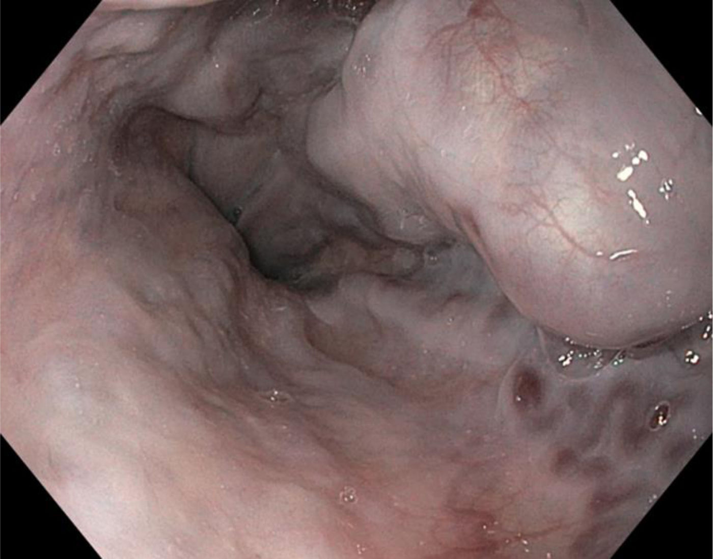 She was admitted to our hospital in June 2024 and programmed for EVL as an outpatient. In the gastroduodenal endoscopy (GDE), 3 large esophageal varices and one medium-sized varix were found. EVL was carried out using 3 elastic bands, with no immediate complications (Fig. 1). Ten days later, the patient arrived at the emergency service, presenting with hematemesis at a volume of 1000 cc, melena, and syncope.