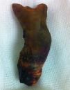 La importancia clínica de los cálculos en las vías biliares radica en su asociación con colangitis y pancreatitis aguda. La colangiografía pancreática retrógrada endoscópica (CPRE) es considerada el método terapéutico más seguro y exitoso para extraer cálculos en el conducto biliar común. No obstante, los cálculos grandes o impactados que ocupan la totalidad del conducto biliar son un reto terapéutico. Se define como cálculo biliar grande aquellos mayores de 10-15mm de tamaño. Existen muy pocos reportes que describan un cálculo único gigante (> 5cm) en el conducto biliar común. Presentamos a una paciente de 58 años que cursó con pancreatitis aguda severa y con hallazgos tomográficos de cálculo biliar impactado, dilatación de las vías biliares y colelitiasis (fig. 1). Se le realizó CPRE, encontrando un lito gigante en el conducto biliar común, ocupando hasta la confluencia de los conductos hepáticos (fig. 2). La paciente fue sometida a una colecistectomía convencional con exploración de vías biliares y hepático-yeyuno anastomosis en Y de Roux, extrayendo un cálculo coraliforme de 7×2cm (figs. 3 y 4). La paciente fue egresada sin complicaciones y se encuentra asintomática 6 meses después de la cirugía, con pruebas de funcionamiento hepático normales.