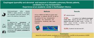 Esophageal dysmotility and abnormal esophageal acid exposure in idiopathic pulmonary fibrosis patients, candidates for lung transplantation. Experience at an academic center in Northeastern Mexico