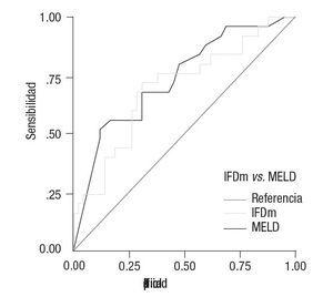 Figura 3. Comparación de MELD e IFDm para predecir mortalidad en hepatitis tóxica por OH.
