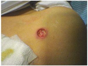 Figura 2. Pioderma gangrenoso escapular.