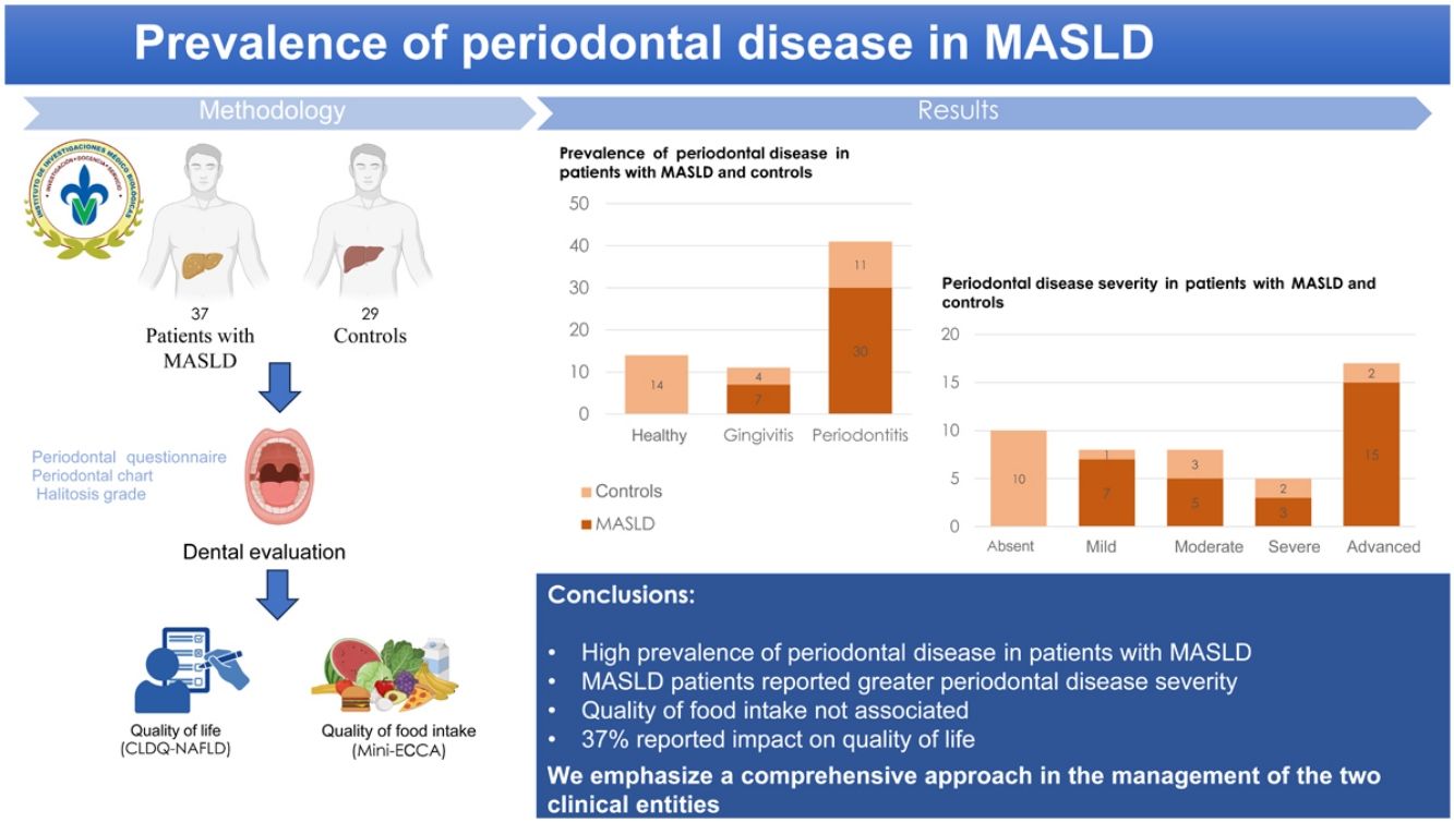 ConclusionsOur results showed an elevated prevalence of periodontal disease in patients with MASLD that negatively impacted quality of life, suggesting the need for comprehensive management.