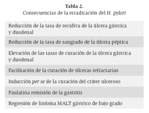 Tabla 2. Consecuencias de la erradicación del H. pylori