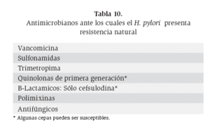 Tabla 10. Antimicrobianos ante los cuales el H. pylori presenta resistencia natural