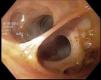 Se realizó coledocoscopia tanto distal como proximal a la coledocotomía efectuada, con extracción activa de litos mediante el uso de canastilla de Dormia y balón endoscópico (figs. 2 y 3), hasta corroborar la ausencia de litos y la completa permeabilidad de la vía biliar proximal y distal (figs. 4 y 5).