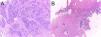 The histopathological result of the lesion adjacent to the anal margin was ulcerated low-grade infiltrating adenocarcinoma (NOS) (Fig. 2A). Similarly, the ulcerated and infiltrating lesion in the rectum was reported as ulcerated low-grade infiltrating adenocarcinoma (NOS) (Fig. 2B).