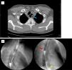 Durante el ingreso se estudia mediante una TC de tórax y un tránsito esofagogástrico (figs. 1A y B) donde se evidencia una doble luz esofágica, sospechando una duplicación esofágica congénita. Se realiza una fibrogastroscopia que muestra un ostium a 24cm de arcada dentaria que corresponde al orificio que conecta la segunda luz esofágica (fig. 2A). Se toman biopsias de la mucosa con aspecto inflamatorio sin evidencia de malignidad en el análisis anatomopatológico. El diagnóstico explica los cuadros de neumonías recurrentes desde la infancia y la disfagia por impactación del ingreso.