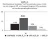 Según los datos disponibles, existe un bloque de ligamiento genético que cubre toda la secuencia genómica del gen GLS en población española. El estudio de cuatro polimorfismos distribuidos a lo largo de todo el gen GLS, ha permitido demostrar la relación entre las alteraciones genéticas y el riesgo de encefalopatía hepática. La combinación de estos 4 polimorfismos genera 16 posibles haplotipos, pero sólo cinco de ellos superan 1% en frecuencia en población caucasiana.24 El haplotipo TACC se ha asociado con una mejor función hepática, menor riesgo de encefalopatía hepática y menor producción intestinal de amonio. La producción intestinal de amonio se puede valorar mediante la prueba de la sobrecarga oral de glutamina. Existe una fuerte asociación entre el haplotipo protector TACC y la función hepática, pero además su presencia se asoció a un menor riesgo de encefalopatía hepática y en pacientes con encefalopatía hepática clínica, este haplotipo protector se encontró casi ausente, mientras que se detectó en una cuarta parte de pacientes sin riesgo de encefalopatía hepática (Gráfica 1). El gen de la glutaminasa y sus alteraciones genéticas están asociados al riesgo de encefalopatía hepática. Es necesario un clonaje posicional para detectar específicamente qué mutaciones en las áreas codificantes pueden estar asociadas a una mayor actividad glutaminasa y un mayor riesgo de encefalopatía hepática. Estos aspectos genéticos avalan el papel de la glutaminasa en la patogenia de la encefalopatía hepática.25 El haplotipo TACC se detecta en 2.6% de los pacientes que se reclutaron en encefalopatía hepática aguda, y en 26% de los pacientes cirróticos sin riesgo de encefalopatía, o sea, con una prueba de la sobrecarga oral de glutamina y pruebas psicométricas (PHES) normales, mientras que se detecta en el 9.3% de los cirróticos en riesgo de EH. Además, estos datos apoyan la hipótesis de la relación entre la actividad glutaminasa y la función hepática. En alcohólicos activos la presencia del genotipo CD14-159TT está elevada (x3) en pacientes cirróticos alcohólicos con ascitis o encefalopatía hepática en comparación con los pacientes con cirrosis hepática alcohólica compensada.26 Por otro lado, el genotipo B1B1 del gen del factor de necrosis tumoral beta se ha encontrado infraexpresado en pacientes con intoxicación por paracetamol que desarrollaron encefalopatía hepática grave.27