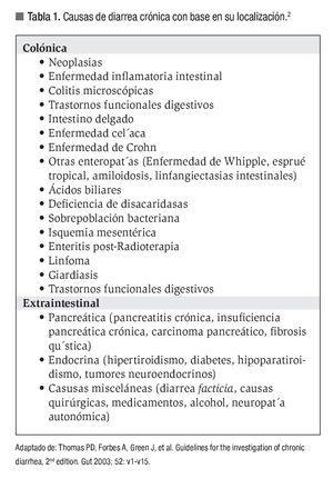 Aunque no hay consenso para definir su cronicidad, la mayoría de los expertos acepta que si la diarrea dura cuatro o más semanas, debe considerarse como crónica.3,5-7