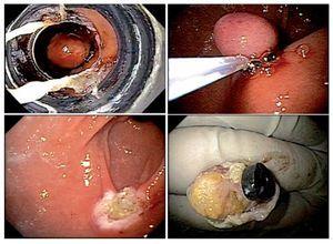 ¿ Figura 2. Resección endoscópica de la mucosa asistida con capuchón.
