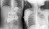 Esofagograma de bario. A: Flechas huecas: estrechamiento marcado de la luz gástrica (linitis plástica). Flechas curvas: irregularidades de la mucosa en la porción proximal del estómago con distensibilidad reducida. Flechas largas: dilatación del esófago medio con estrechamiento severo distal (seudoacalasia) que produce paso de material de contraste filiforme e irregular por unión esofagogástrica. B: pliegues mucosos gástricos distorsionados y paredes rígidas en la región del cuerpo.